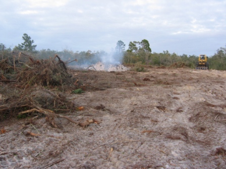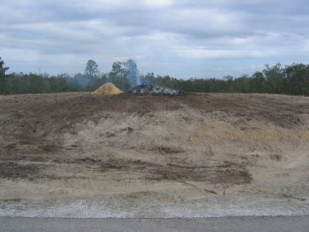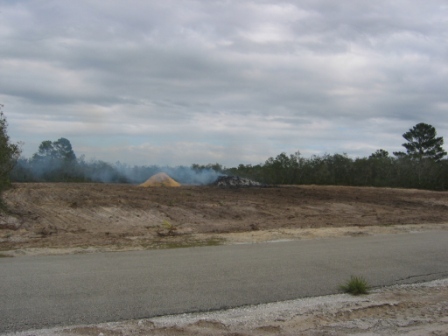With our experience landscaping our current house, we knew that we could re-landscape this lot once the house was built using native plants to create a more inviting home. We hope to obtain certifcation as a FL Friendly Yard and a Certified Wildlife Habitat. This is the lot, pretty much cleared with a burn pile in the middle. |