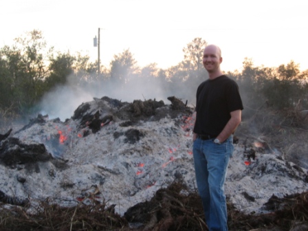 Bruce spent a lot of time staring into the burn pile. The fire burning underneath the ash gave off an eerie and scary glow. |