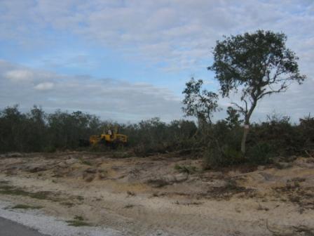 January 12, 2007 - We finally thought we were ready to get construction going and had to start by clearing the lot. The decision to clear the whole lot was a relatively easy one because the native landscape on our acre was not very attractive. The majority of the lot was covered by scrub. |