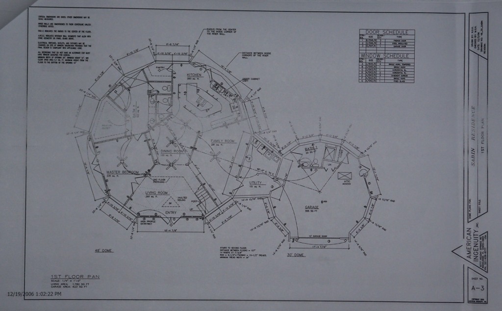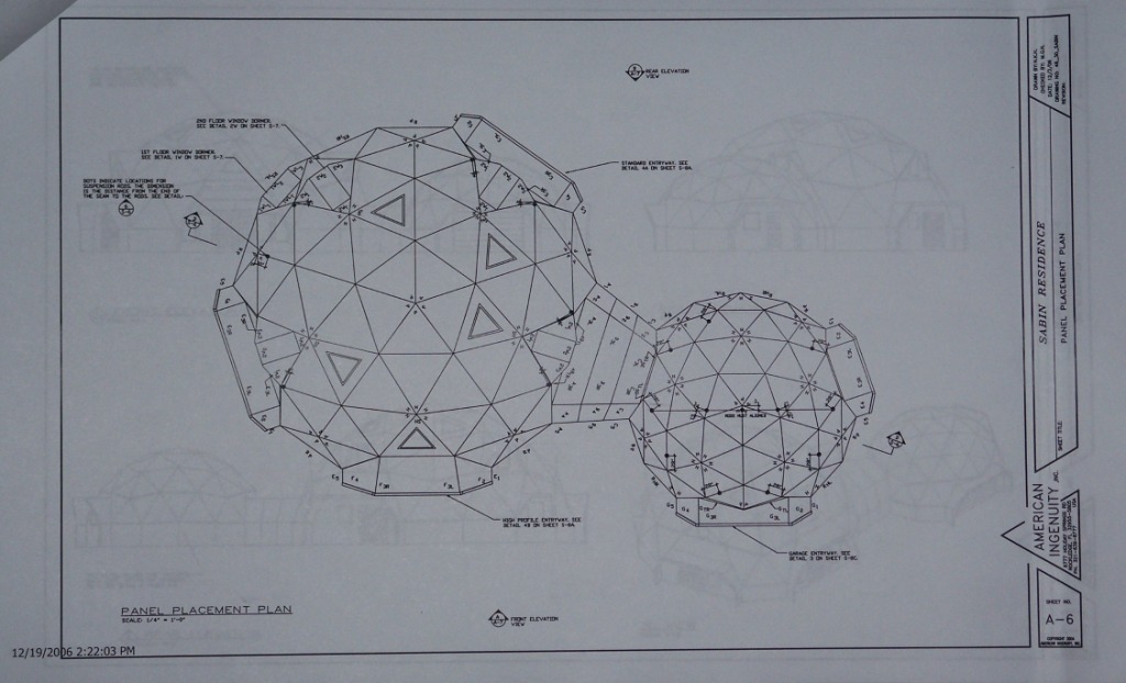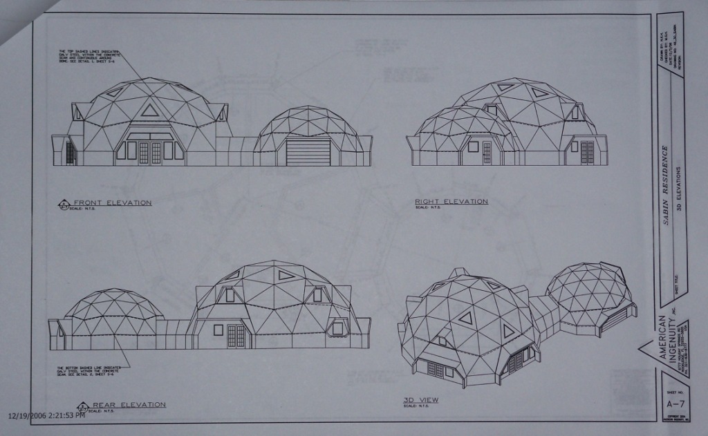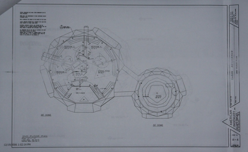 It took us three tries, but we finally got the plans for the SabinDome finalized. We purchased these plans from AI Domes in Rockledge, FL. We started off with a stock plan and then made several changes to suit our needs and wants. |