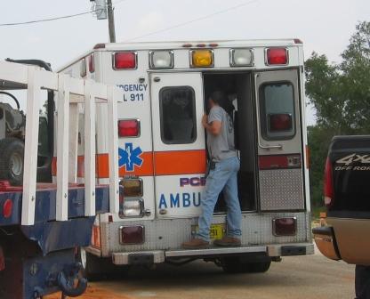 We will never say that this adventure of building a home was boring. Yes, the ambulance you see in the photo above was taken at our job site. Billy, a day laborer, became dehydrated and felt ill enough to need the assistance of our local 911 service. He was taken to the ER and when we spoke with him this evening he seemed to think he would be fine, just didn't take enough care to drink enough fluids. |