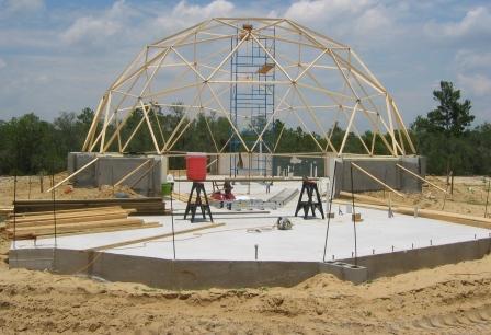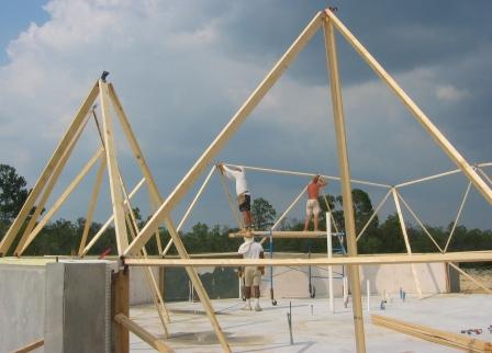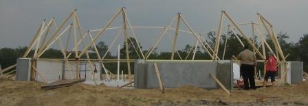 Here, some final pieces of the rib system are being set into place. We have been told that ordinary people, just like us, can build a dome if we want to. After watching these guys, I couldn't imagine dealing with the current stresses, plus the effects of this much physical labor! |