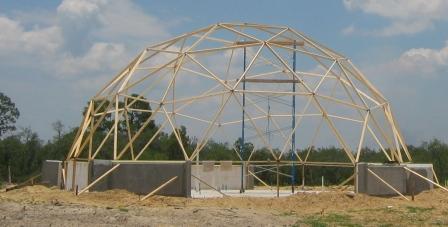June 22, 2007 - The rib system was completed this morning. The dome is ~24 feet high, which reflects 1/2 the diameter for those of you paying attention to the geometry of our 48' dome. |